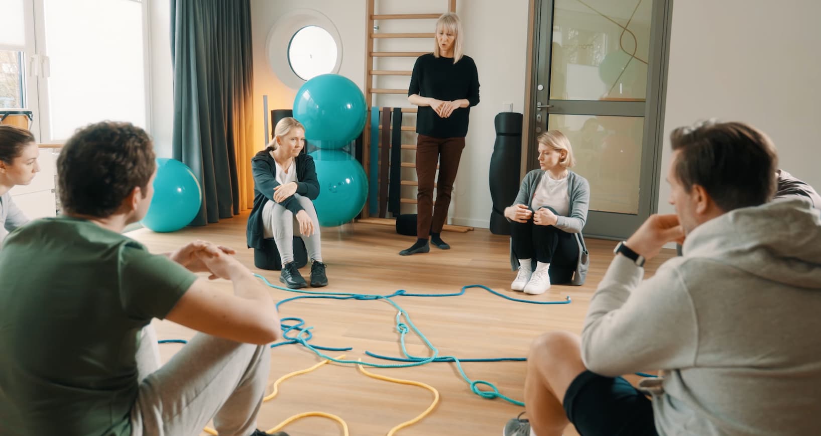 Die Körpertherapie findet in kleinen Gruppen statt, je nach Indikation auch im Einzelsetting. Typischer Ablauf: